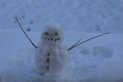 "T'as vu notre bonhomme? Je lui ai mis mes gants pour faire des mains parce qu'on a pas de bouts de bois."